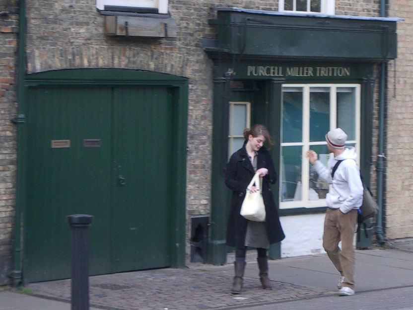 previous back next   Lydia and Tristram with a sign that says Purcell