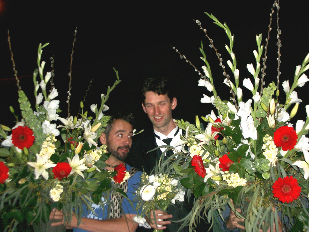 previous back next   Scott and someone i don't know stealing flowers